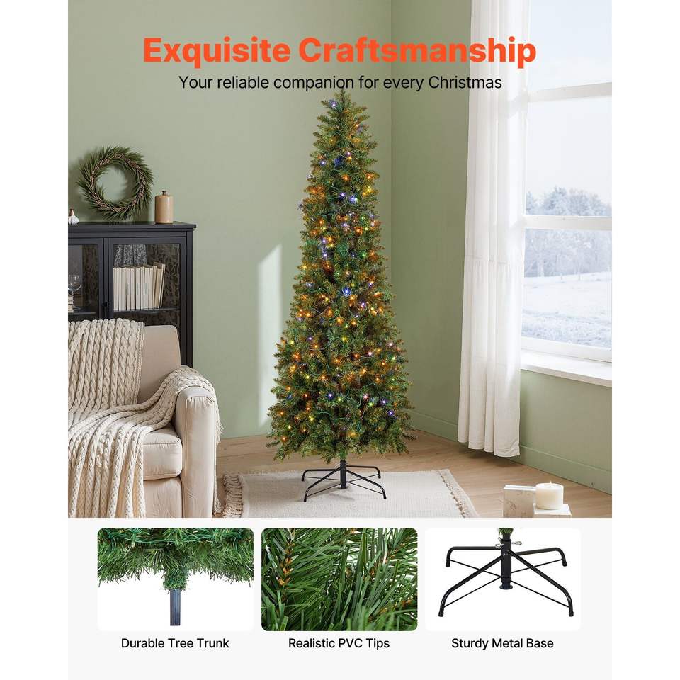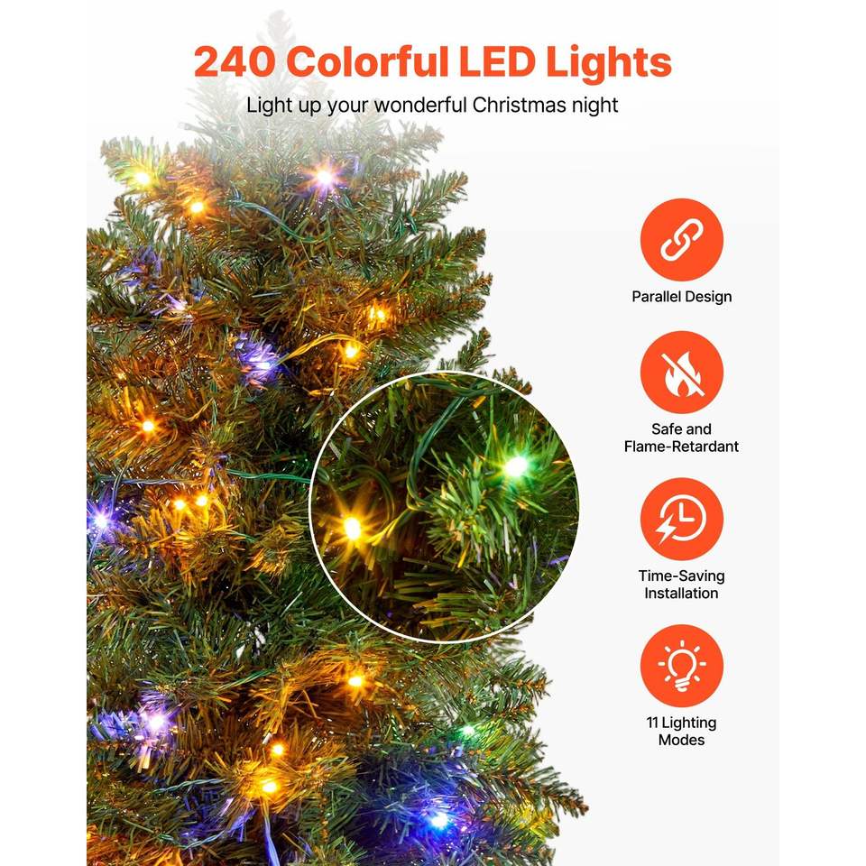 Albero di Natale Artificiale Preilluminato da 180 cm con 240 Luci LED Colorate, 11 Modalità di Illuminazione, Decorazione Festiva Completa con 635 Alberi di Natale