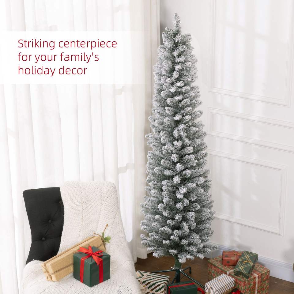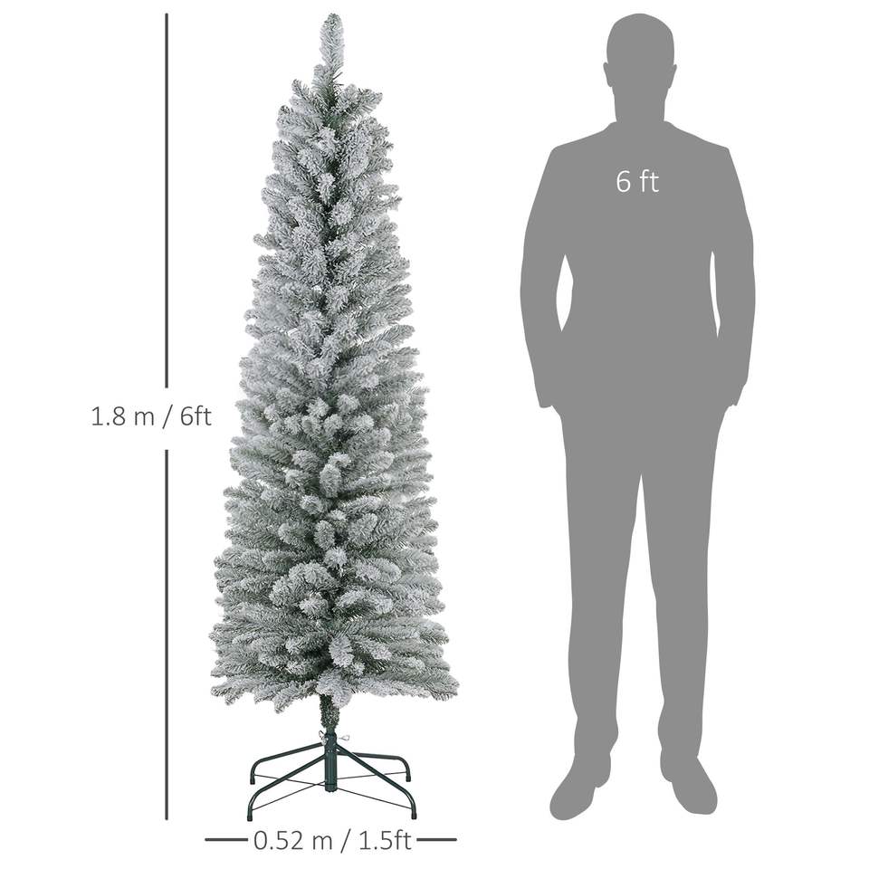 Albero di Natale Artificiale Realistico a Forma di Matita da 1,8 m con 329 Punte Innevate e Base in Metallo