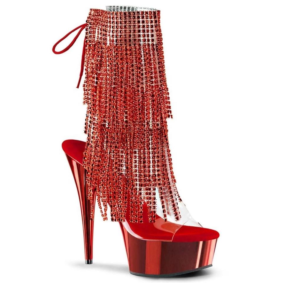 6inch-15cm Women's Ankle Footwear Boots Female Sexy Tassel Thin Heel High Heel Back Lace-up Pole Dance Fringe Shoes