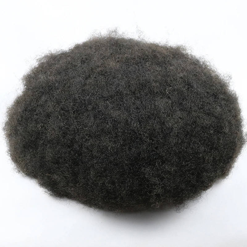 Toupet per Uomo in Capelli Umani Brasiliani Remy Afro Kinky Curly 6MM 8mm, 100% Naturale, Design Ottimale, Base in Pizzo/Mono/PU, Chiusura 8x10