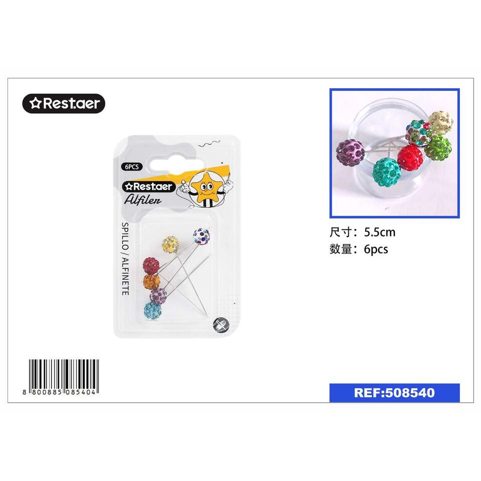 6 pezzi 5.5cm con testa diamantata multicolore spille da cucire portatile in metallo manico in plastica per lavorare a maglia da lavoro in pelle