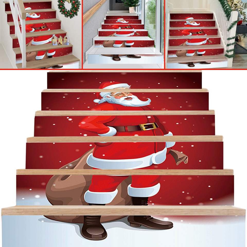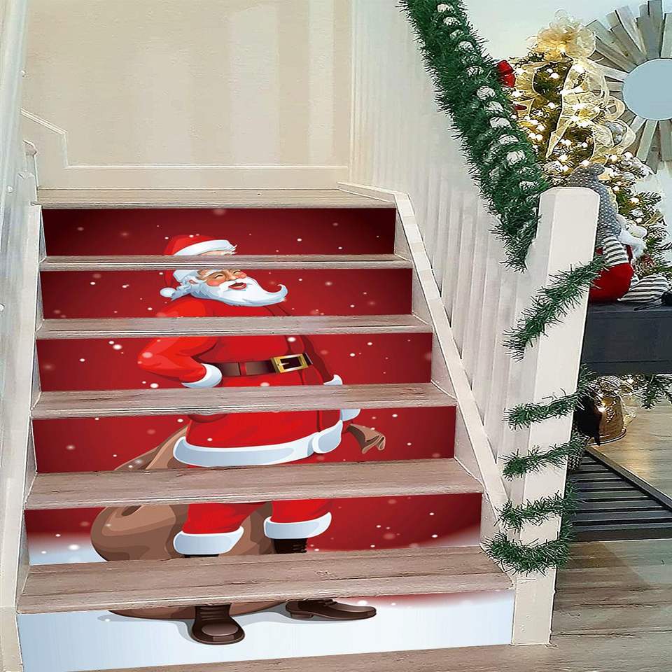 6 Pezzi Adesivi Natalizi Impermeabili in PVC per Gradini, Rimovibili e Autoadesivi con Motivo Babbo Natale, Decorazioni per Scale e Pareti
