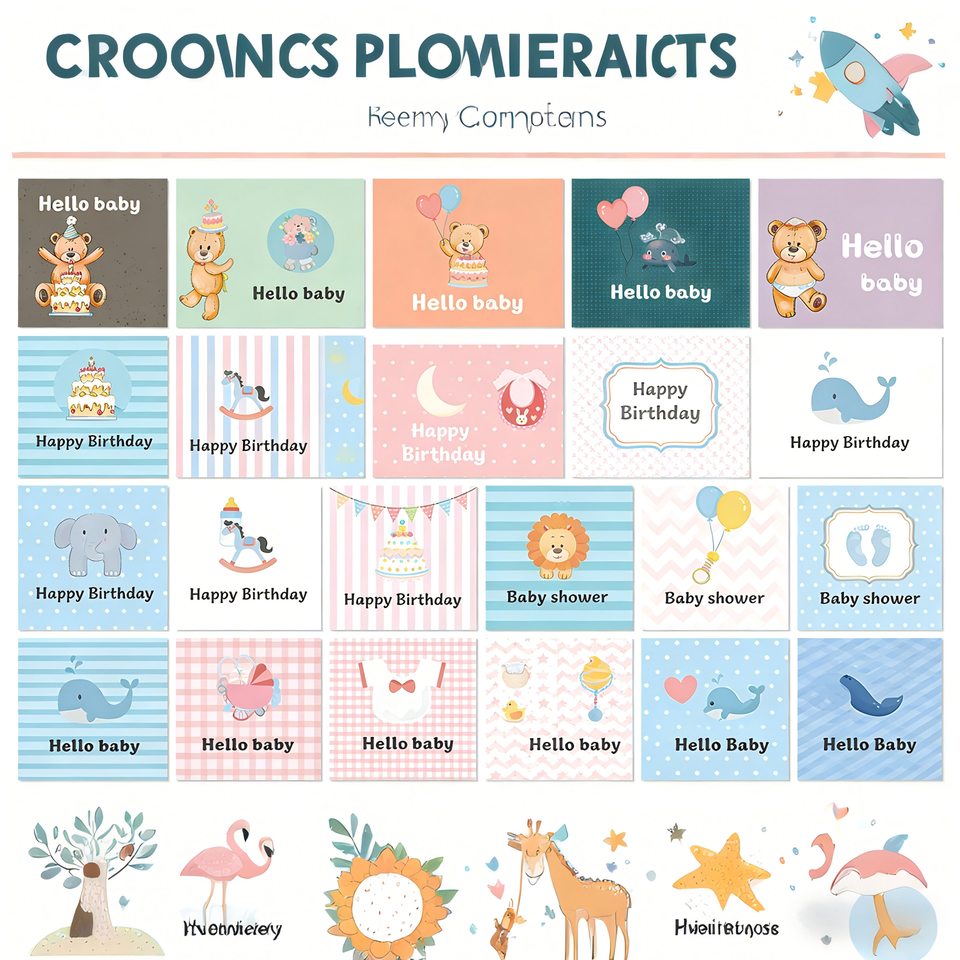 Set di 6 biglietti per baby shower, biglietti di auguri per buon compleanno con buste