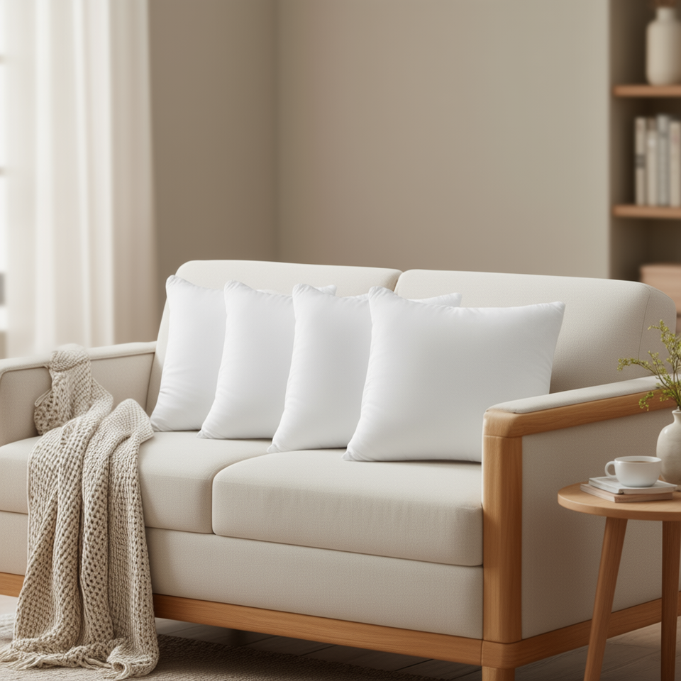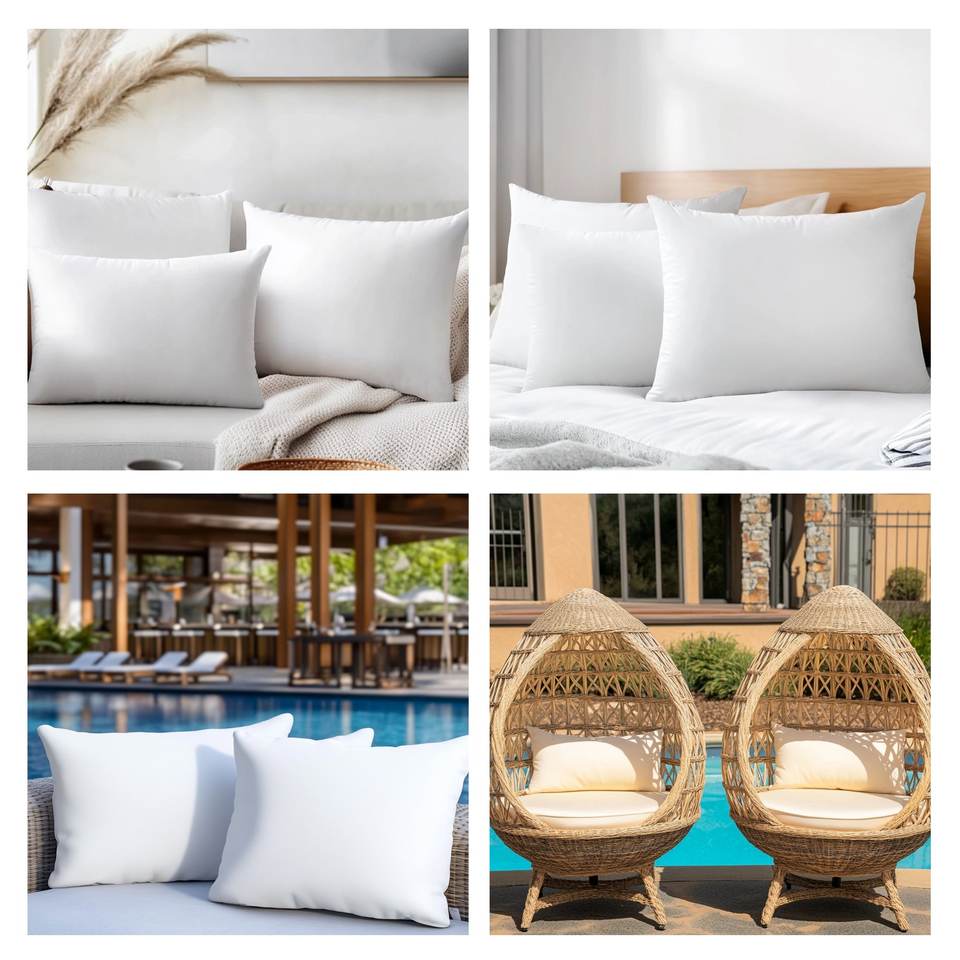 Set di cuscini lombari premium bianchi 100% poliestere, imbottitura in fibra cava quadrata, realizzati a macchina, lavabili, per divano e sedia.