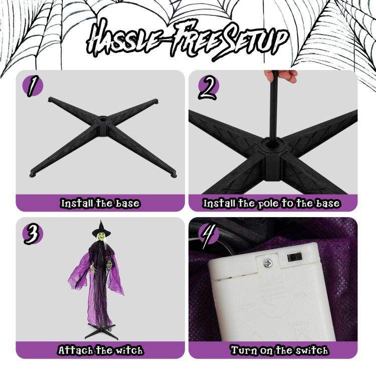 Decorazione di Halloween da 2,2 m a forma di strega con occhi luminosi e movimento automatico delle braccia