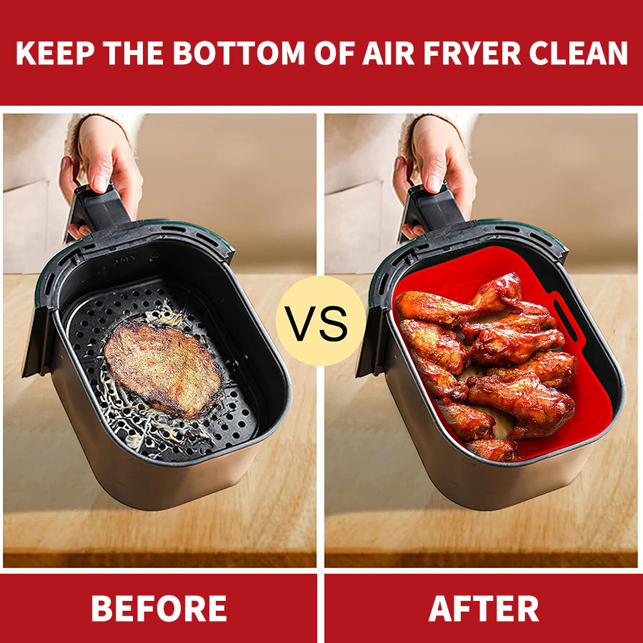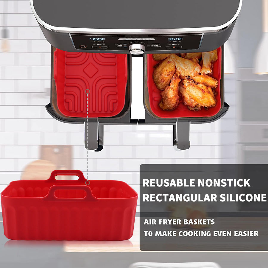Friggitrice in Silicone riutilizzabile da 7.5 8.5 pollici per cestello rettangolare 8-10QT con manici per piatti e padelle da forno