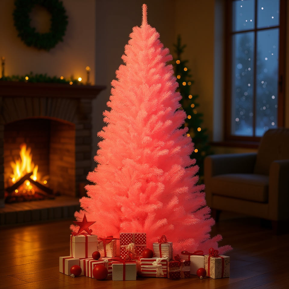 Albero di Natale Artificiale Rosa 2,3 Metri, Abete Pieno con Cerniere, Leggero, per Decorazioni Interne