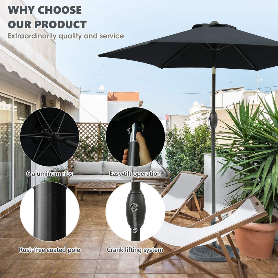 Ombrello da Patio nero da 7,5 piedi * 7,5 piedi con manovella e pulsante di inclinazione per esterni ombrellone da tavolo con palo in alluminio