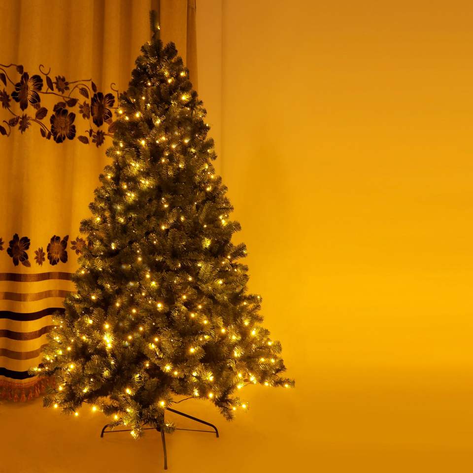 Albero di Natale Artificiale Pre-Illuminato da 2,3 m con 400 Luci LED, Base Pieghevole e Girevole, Comoda Decorazione Natalizia