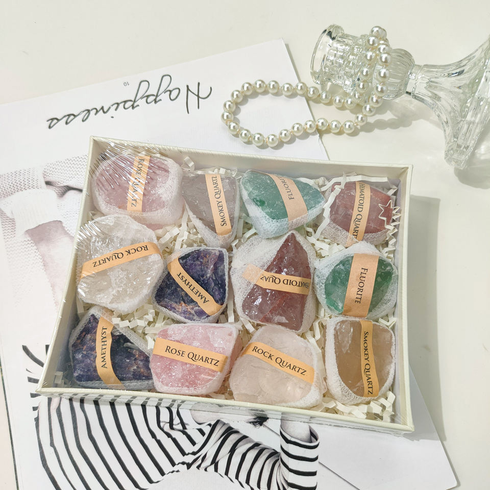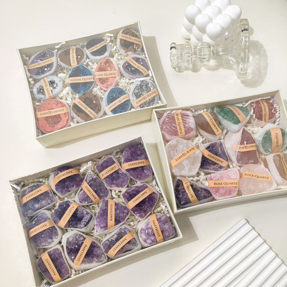 Scatola regalo in pietra di colore misto con 7 chakra in cristallo grezzo grezza geode grappolo scatola regalo con pietra con nome di pietra