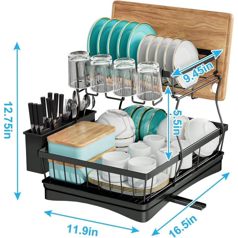 Scolapiatti a 2 livelli di grande capacità con 7 codici, organizer da cucina smontabile, grande scolapiatti a 7 codici