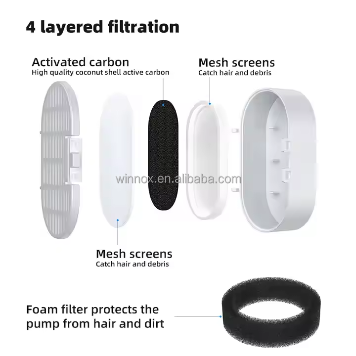 Eco-Friendly, Automatic, Stocked, Portable, Easy To Clean, Filtration System, Encourage Drinking, Food Grade Material, Durable, Ultra Quiet, Lightweight