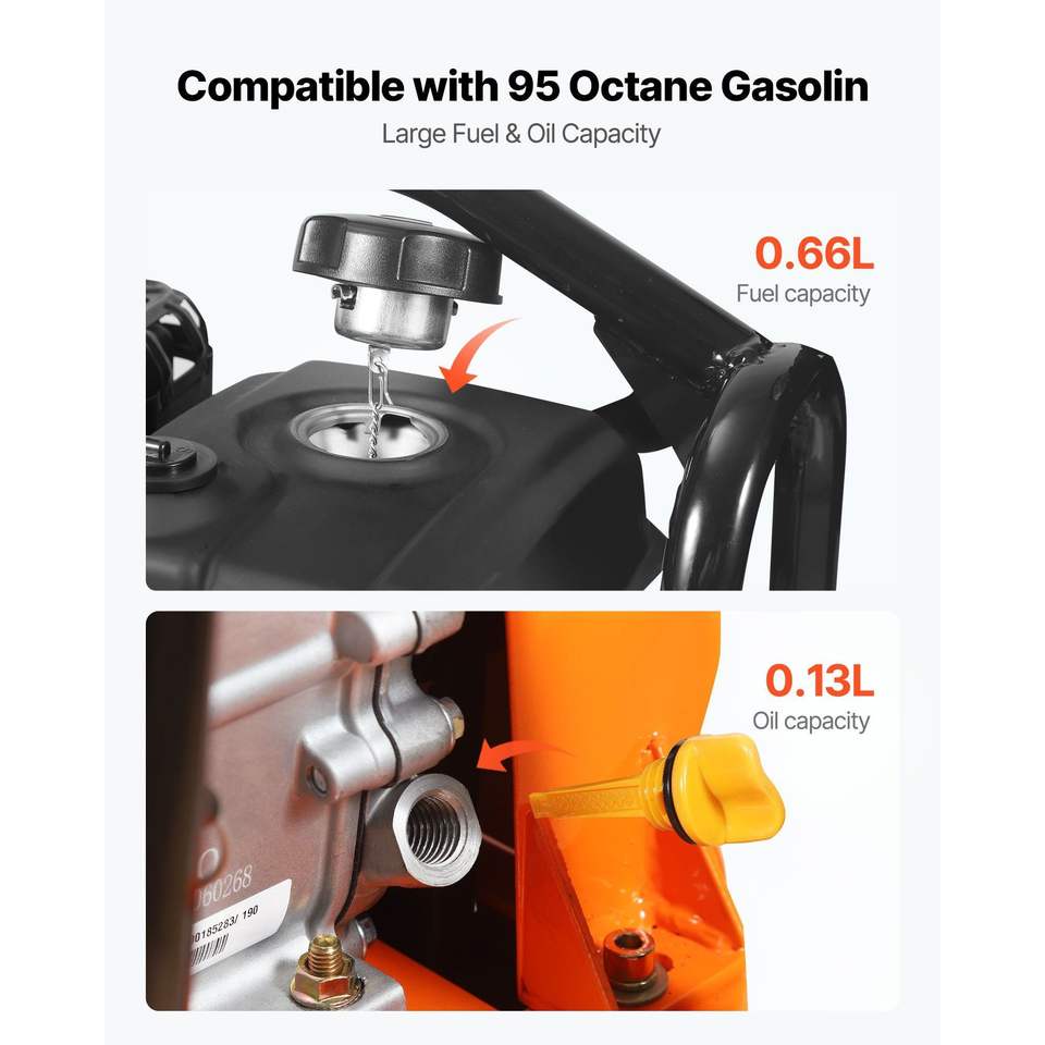 Piastra Vibrante Compattatrice a Benzina da 7 HP 196CC, 5400 VPM, Forza di Compattazione 4440 Libbre, Piastra 23 x 18 Pollici, Compattatore a Spinta Manuale