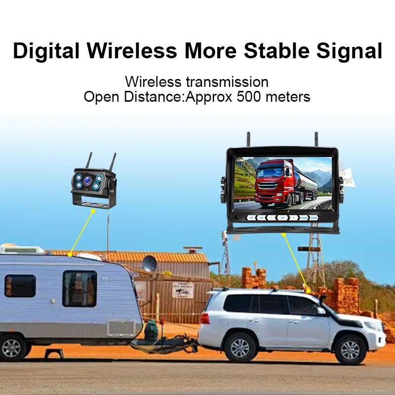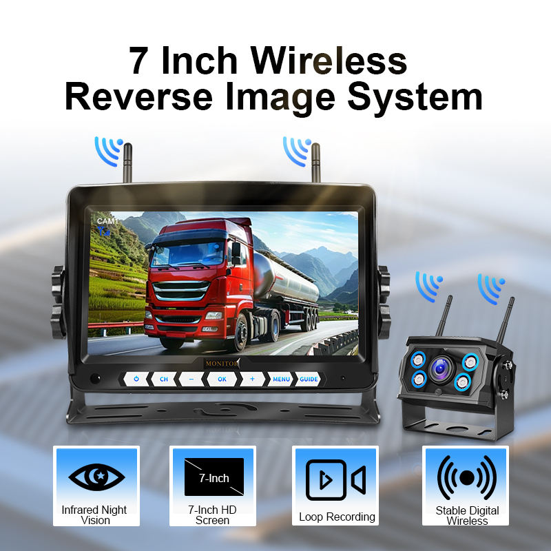 Monitor DVR con Schermo IPS da 7 Pollici, Telecamera Posteriore Impermeabile IP67, Sistema di Telecamere Wireless per Rimorchi, Camion, Camper e Autobus