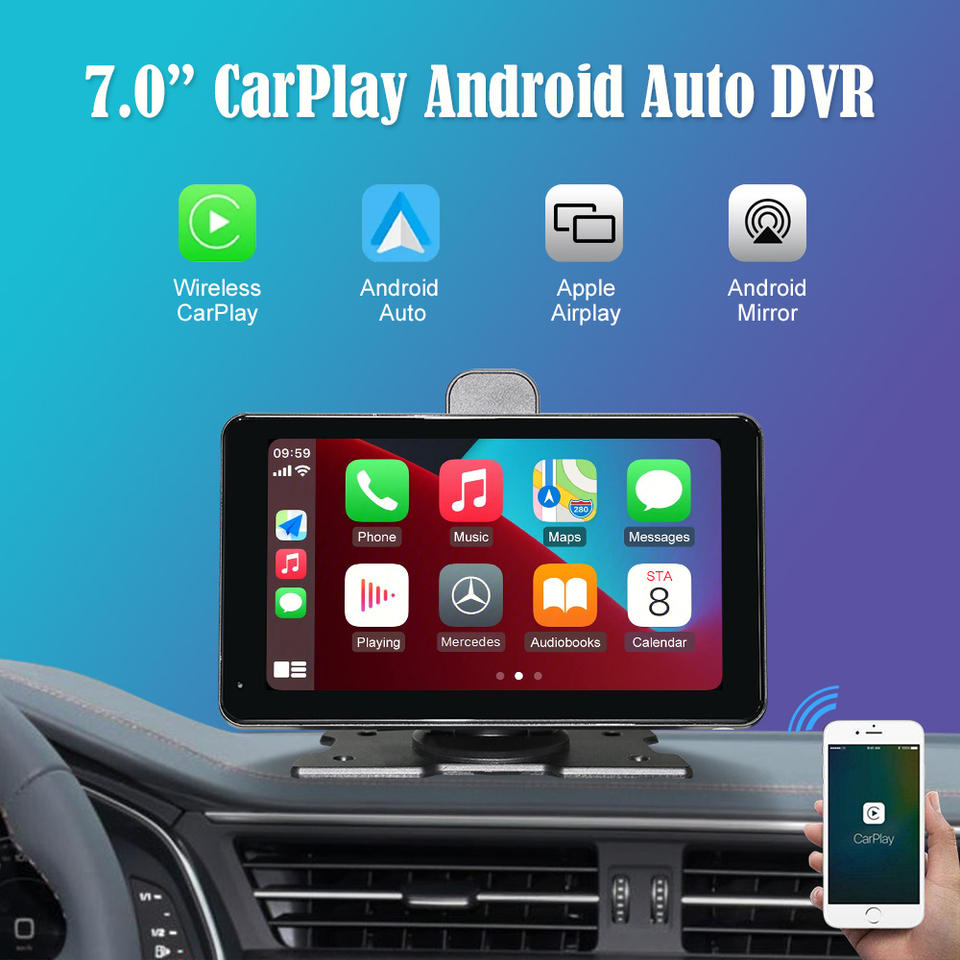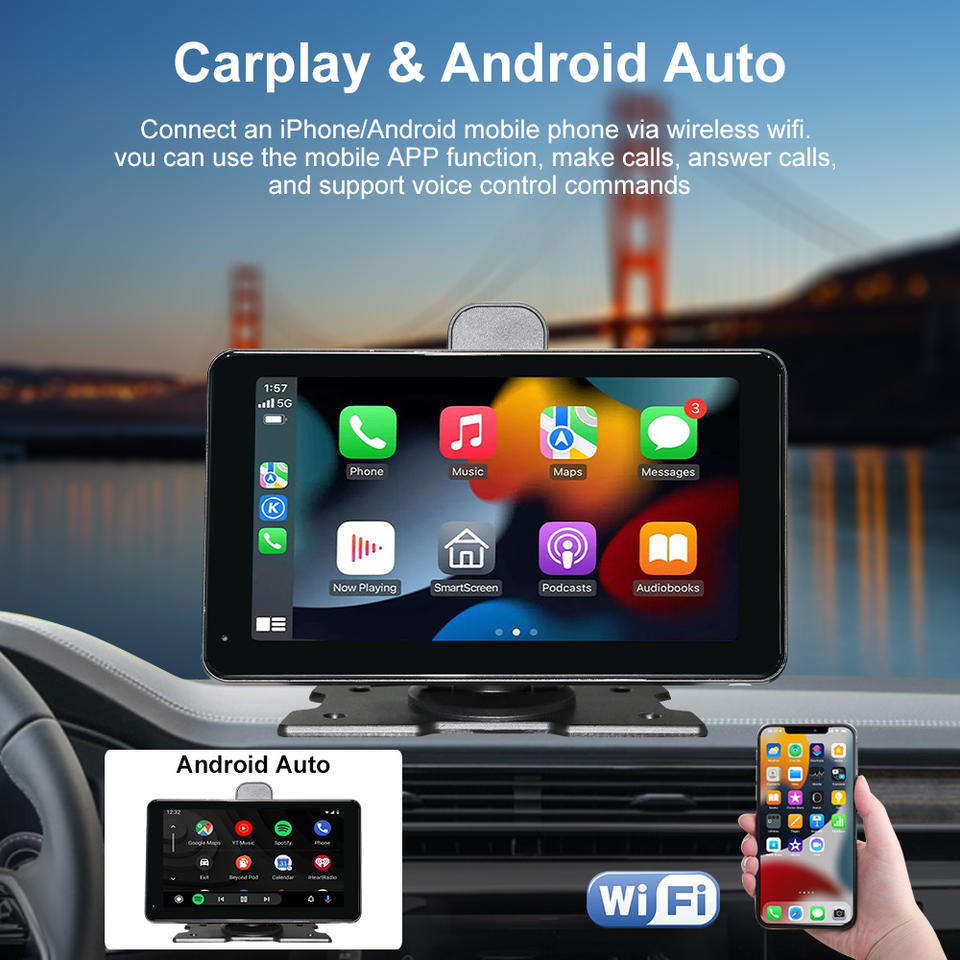 Schermo Portatile per Auto da 7 Pollici Touchscreen con Navigatore, Stereo Wireless CarPlay per IOS e Android Auto AutoLink