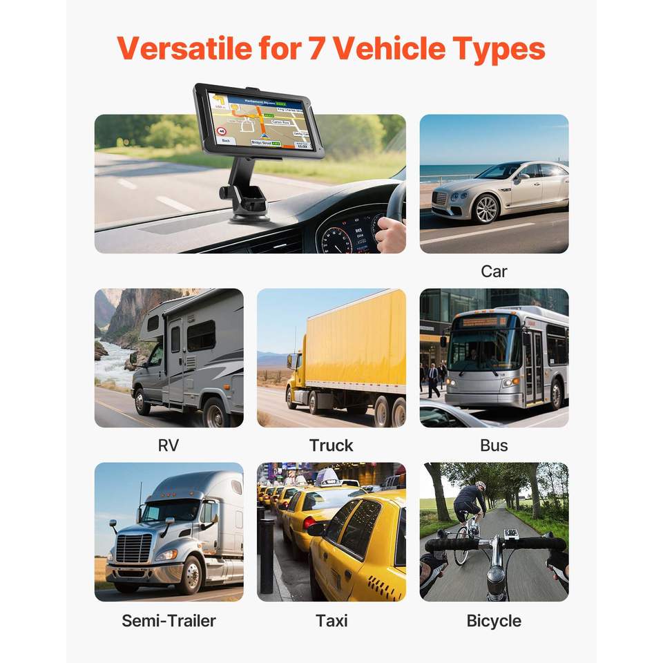 Navigatore GPS per Auto con Schermo Touch da 7 Pollici, Sistema di Navigazione da 16GB, Dash Cam Integrata, Guida Vocale Turn-by-Turn