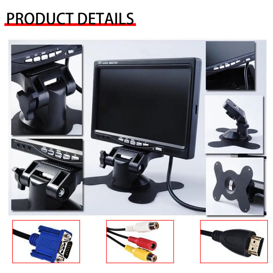 Monitor da auto da tavolo TFT LCD widescreen da 7 pollici con telecomando, lettore video MP3/MP4/MP5 e assistenza al parcheggio, 1 anno di garanzia