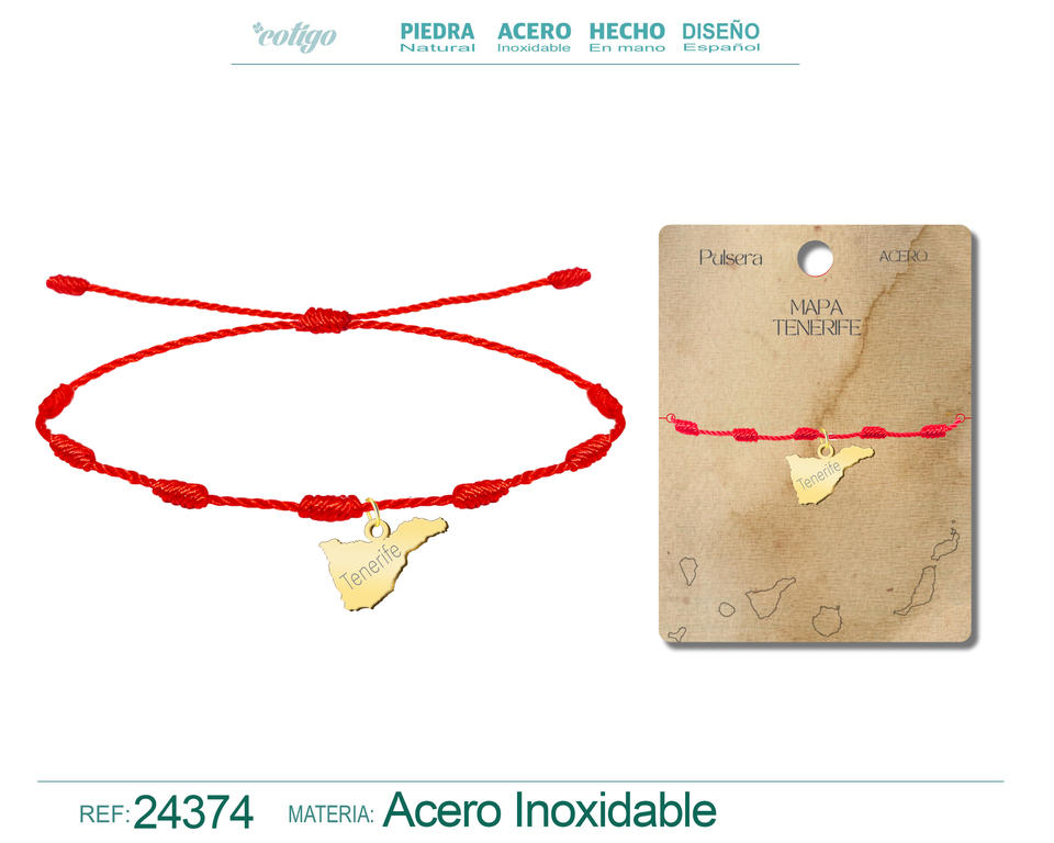 7 Knot Gold-Colored Steel Tennis Bracelet with Map of Tenerife Fashion Accessory Bracelet