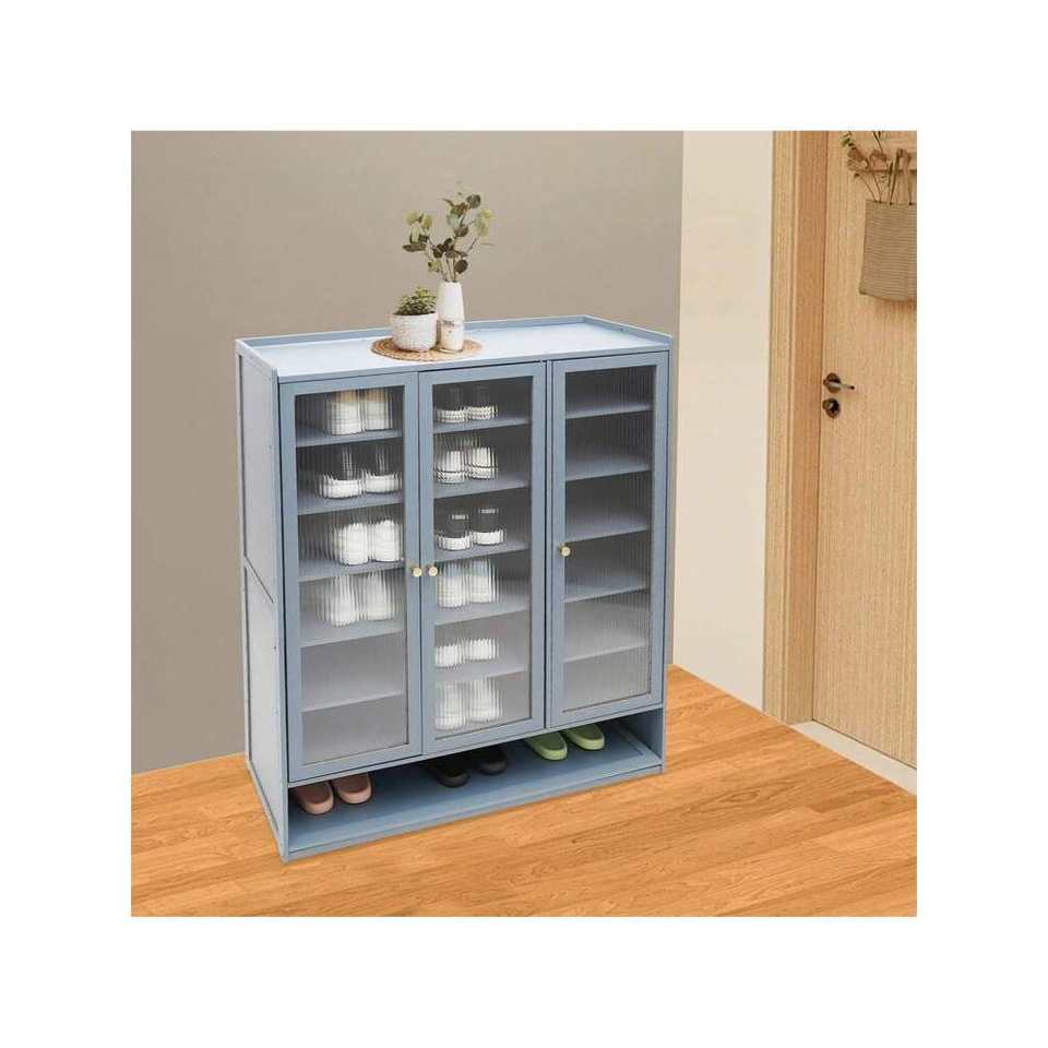 7-Layer Bamboo Freestanding Shoe Cabinet Vertical Front Door Entrance Organizer with 3 Doors for Dorm Garage Home Shoe Rack