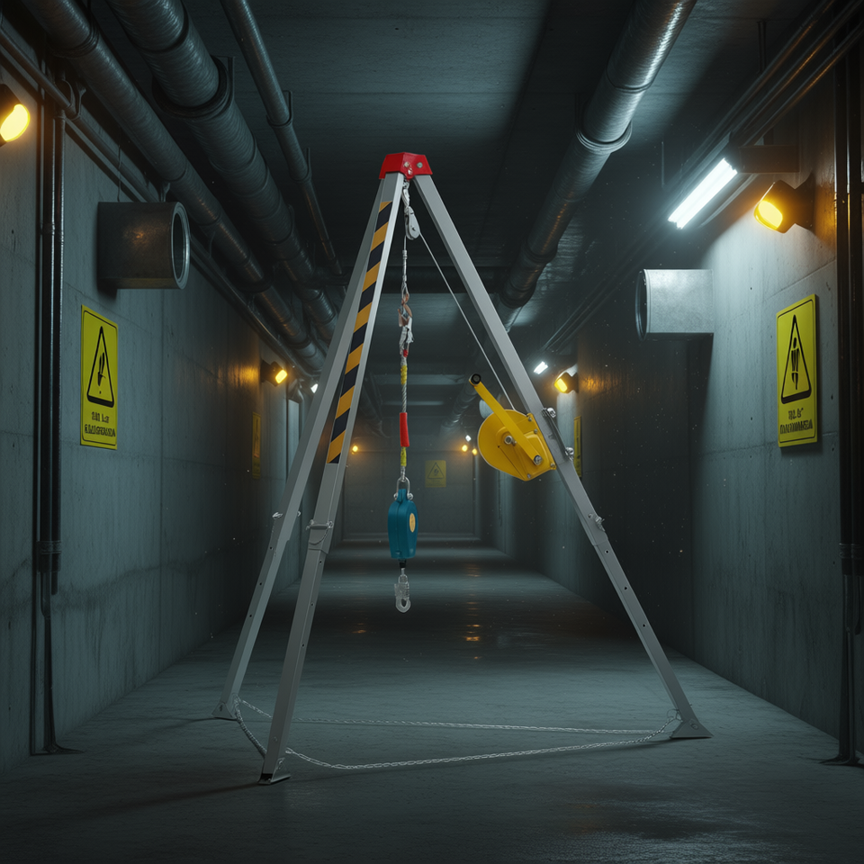 Confined Space Rescue Tripod Kit 7' Legs 98 Ft Steel Wire Rope 1800 Lbs Capacity With Harness And Storage Bag D0100HAMEBA