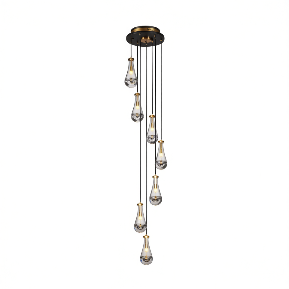 Lampadario a sospensione regolabile a 7 luci, in ferro dorato con paralume a campana in vetro, attacco E26 LED, grande, per illuminazione di ingressi e sale da pranzo