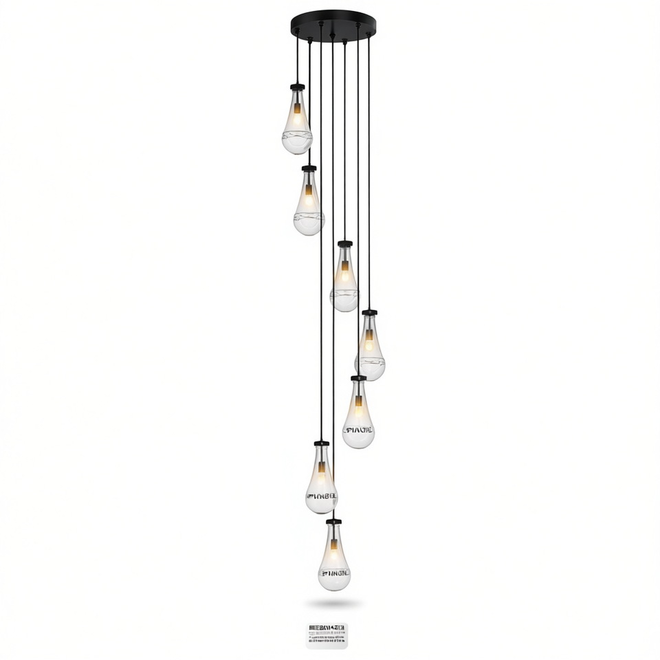 Lampadario a sospensione regolabile a 7 luci, in ferro nero con paralume a campana in vetro, attacco E26 LED, grande, per sala da pranzo, soggiorno, illuminazione per scale