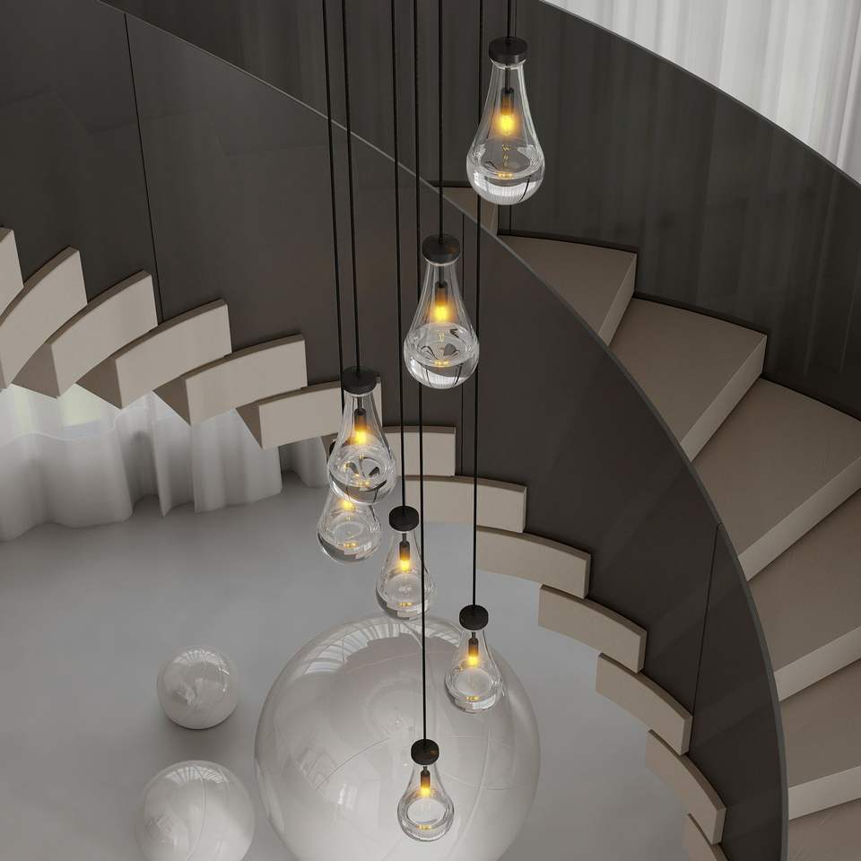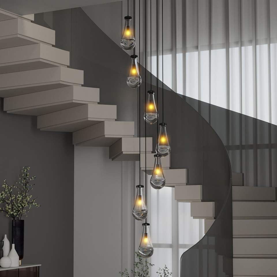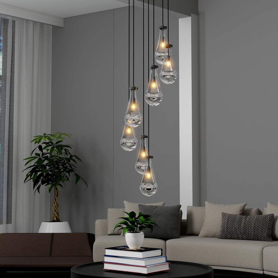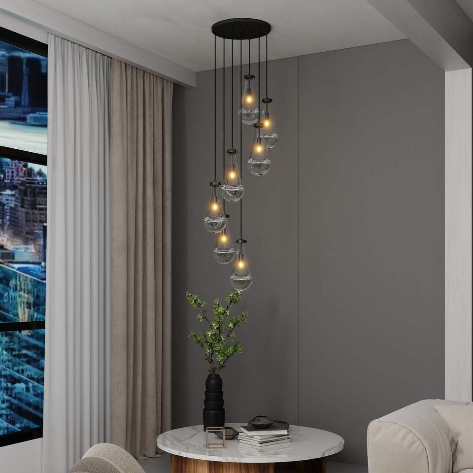 Lampadario a sospensione nero regolabile a 7 luci per sala da pranzo, soggiorno e ingresso