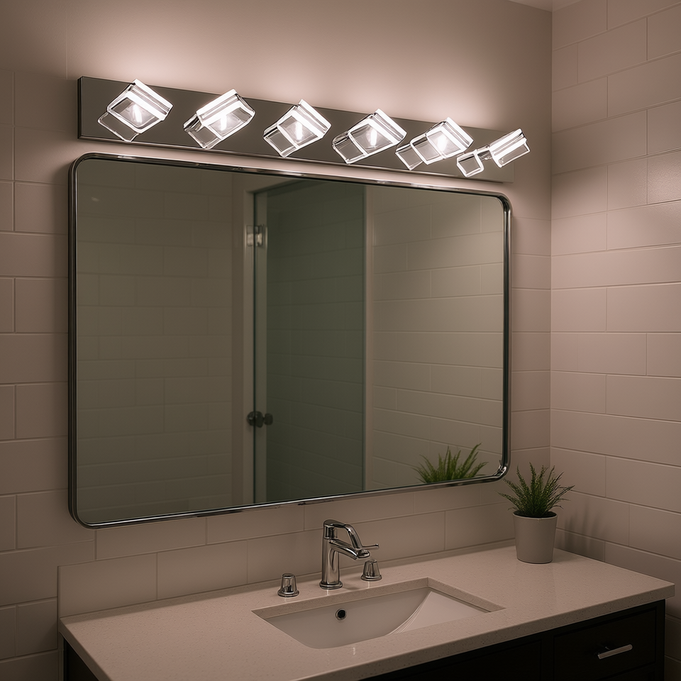 Lampada da Specchio LED Moderna Cromata 45 Pollici, Illuminazione a Parete per Bagno, Paralumi in Acrilico, Luce Bianca Calda 3500K