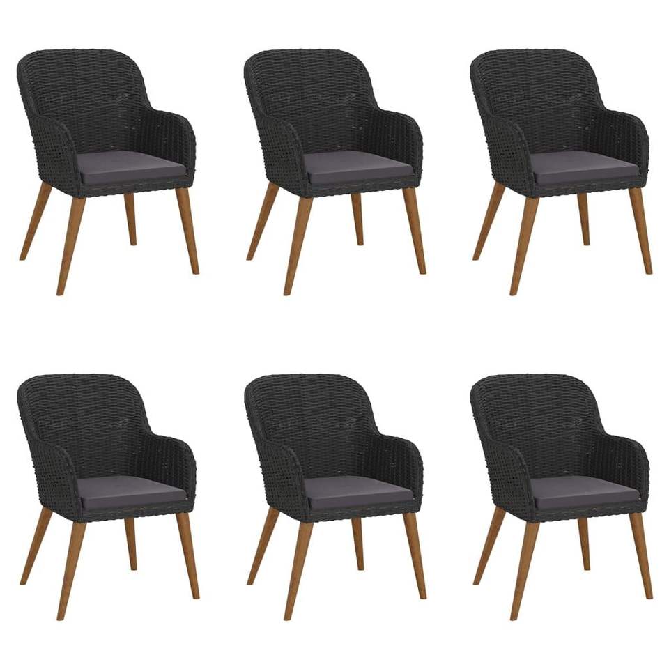Set da pranzo Patio nero da 7 pezzi con cuscini per il tempo libero in giardino