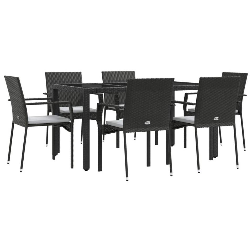Set da pranzo da 7 pezzi in Poly Rattan nero con cuscini Set da giardino