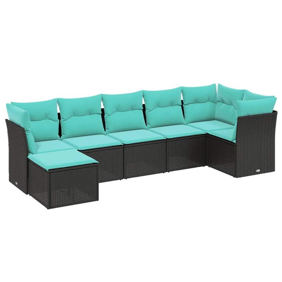 Set salotto giardino 7 pezzi rattan PE D0100H5U5UX nero, telaio acciaio verniciato a polvere, cuscini sfoderabili, cap. 242,5 lb