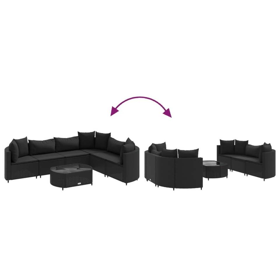 Divano da 7 pezzi in Poly Rattan nero con cuscini eleganti mobili da esterno