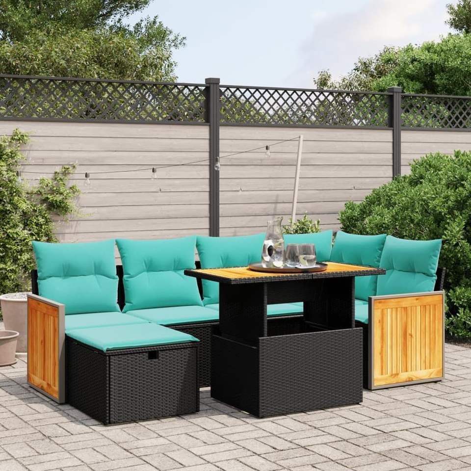 Set Divano da Esterno a 7 Pezzi in Polyrattan Nero con Cuscini - Elegante Arredamento da Giardino