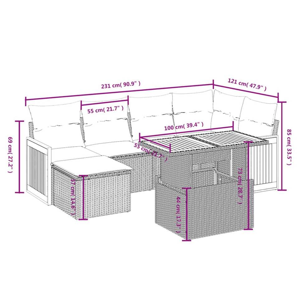 7-Piece Black Poly Rattan Patio Sofa Set with Cushions Stylish Outdoor Furniture