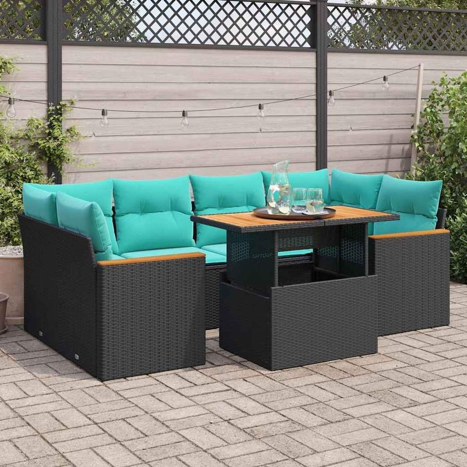 Set Divano da Esterno a 7 Pezzi in Polyrattan Nero con Cuscini - Elegante Arredamento da Giardino