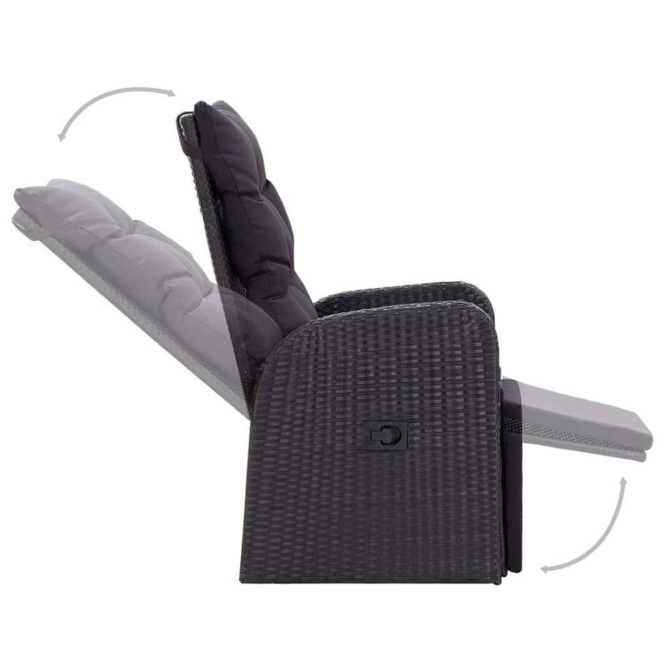 Set da pranzo da giardino in rattan nero a 7 pezzi con tavolo in teak per uso esterno