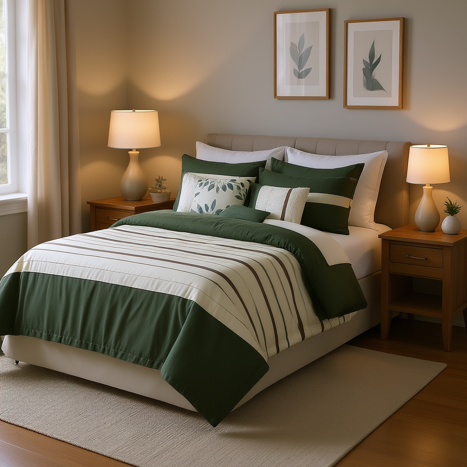 Set Copripiumino Classico in Cotone a 7 Pezzi, Design a Righe, Imbottitura in Poliestere, Lavabile in Lavatrice, Biancheria da Letto