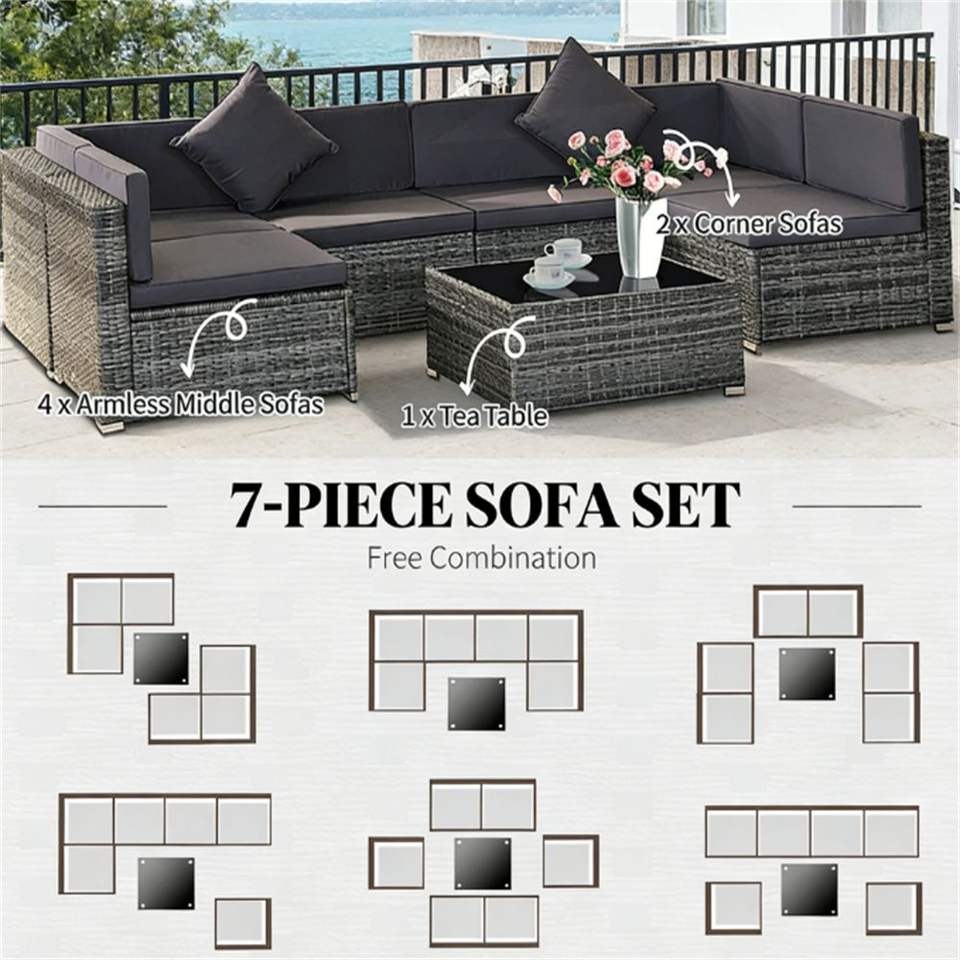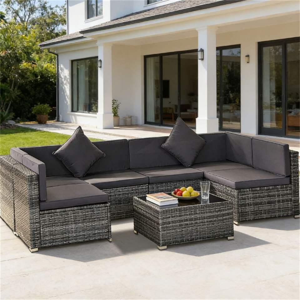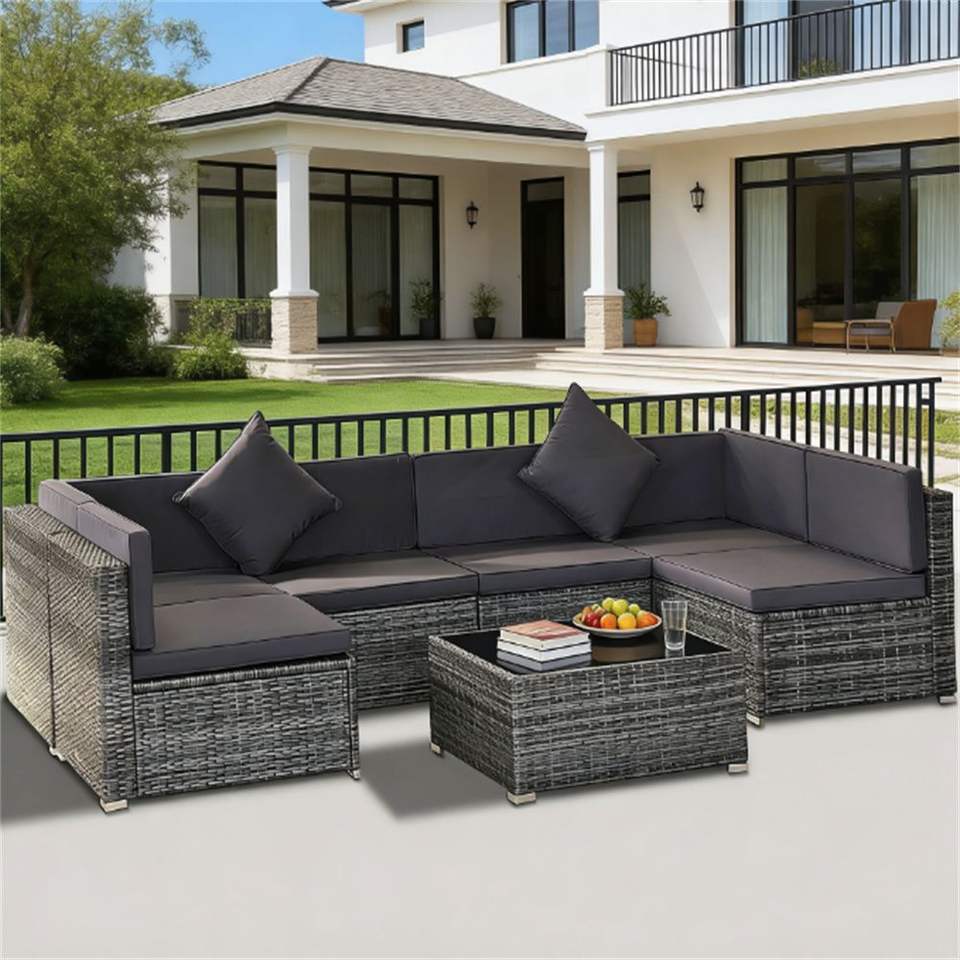 Set di Mobili da Giardino in 7 Pezzi, Divano Componibile da Esterno, Set da Giardino in Colore Grigio