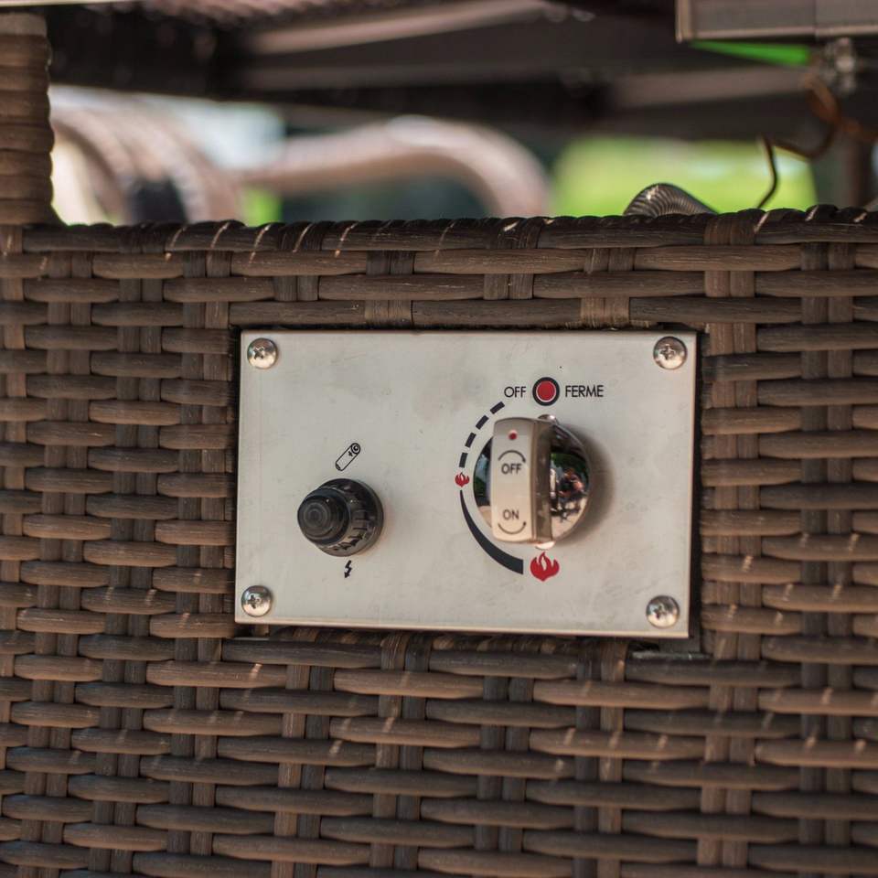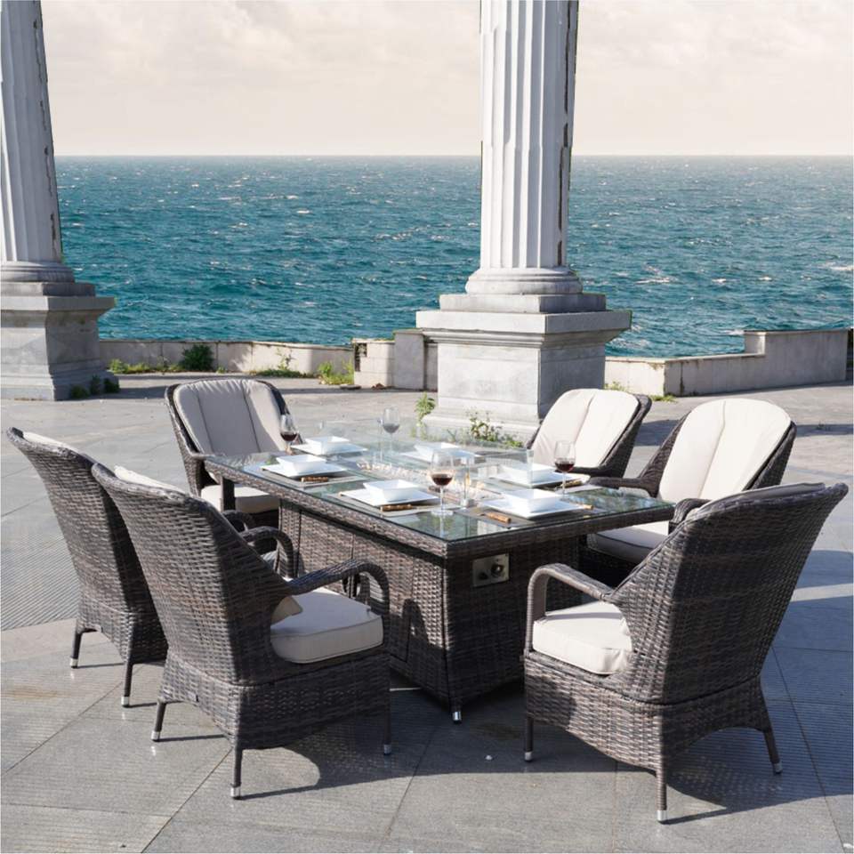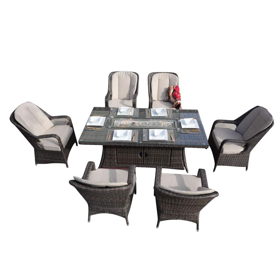 Set da Giardino in Rattan a 7 Pezzi con Braciere a Gas, Tavolo Rettangolare e Sedie con Braccioli