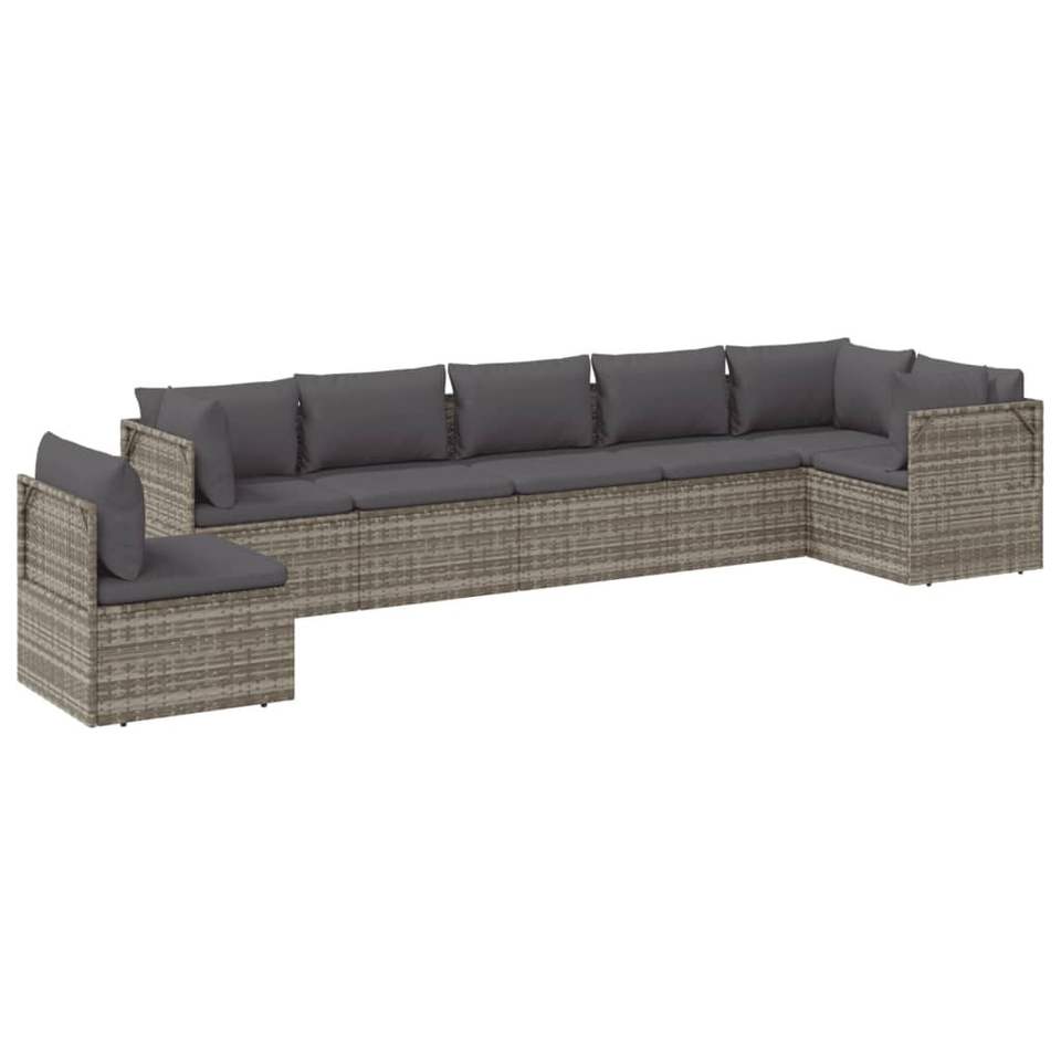 Set da salotto in Poly Rattan grigio 7 pezzi con cuscini Set da giardino