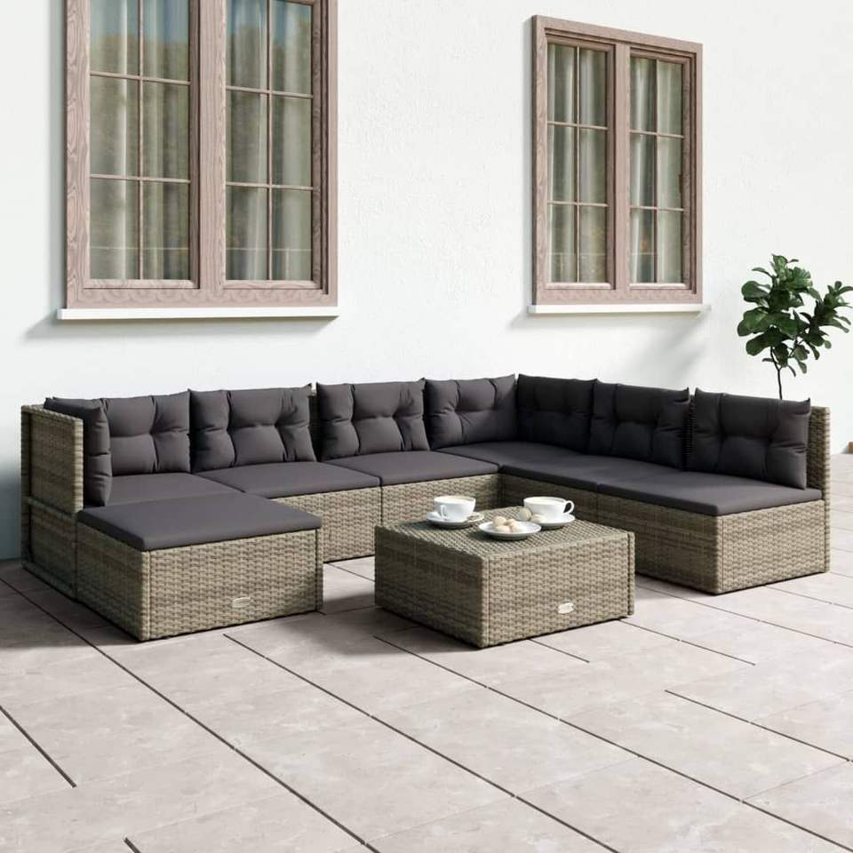 7-Piece Gray Poly Rattan Patio Lounge Set with Cushions Garden Sets