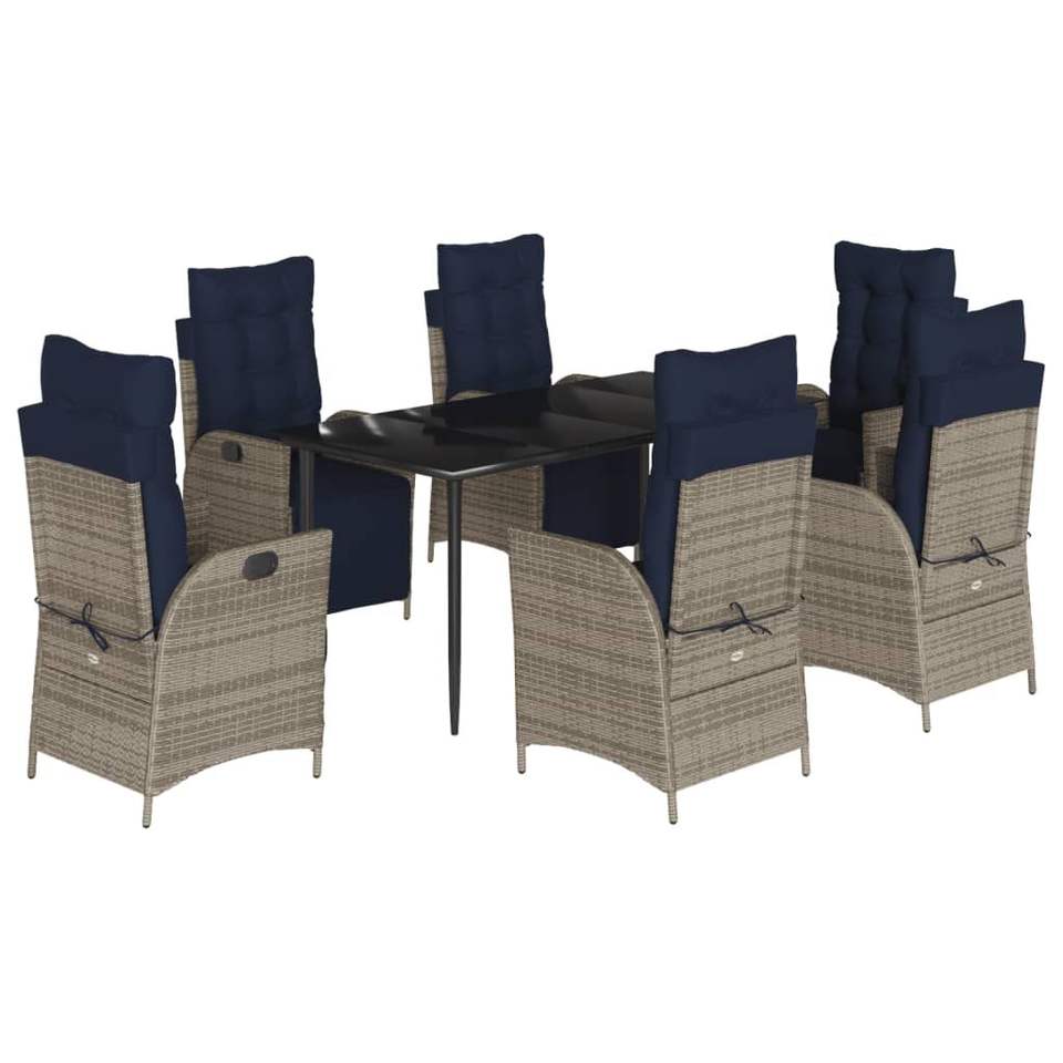 Set da Pranzo da Giardino in Rattan PE Grigio a 7 Pezzi con Poggiapiedi Regolabili, Arredamento da Esterno dal Design Elegante