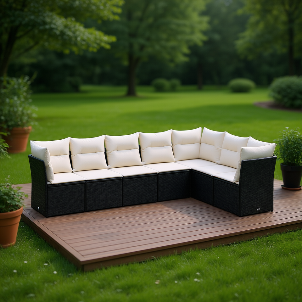 Set Divano da Giardino Modulare in Rattan PE Nero, Arredamento da Esterno dal Design Contemporaneo con Cuscini in Schiuma ad Alta Densità