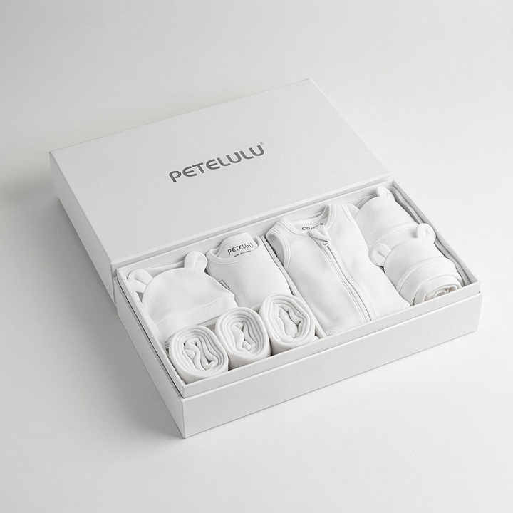 Set Regalo per Neonati in Cotone Biologico 7 Pezzi Unisex con Sacco per Dormire e Outfit Minimalista per Baby Shower