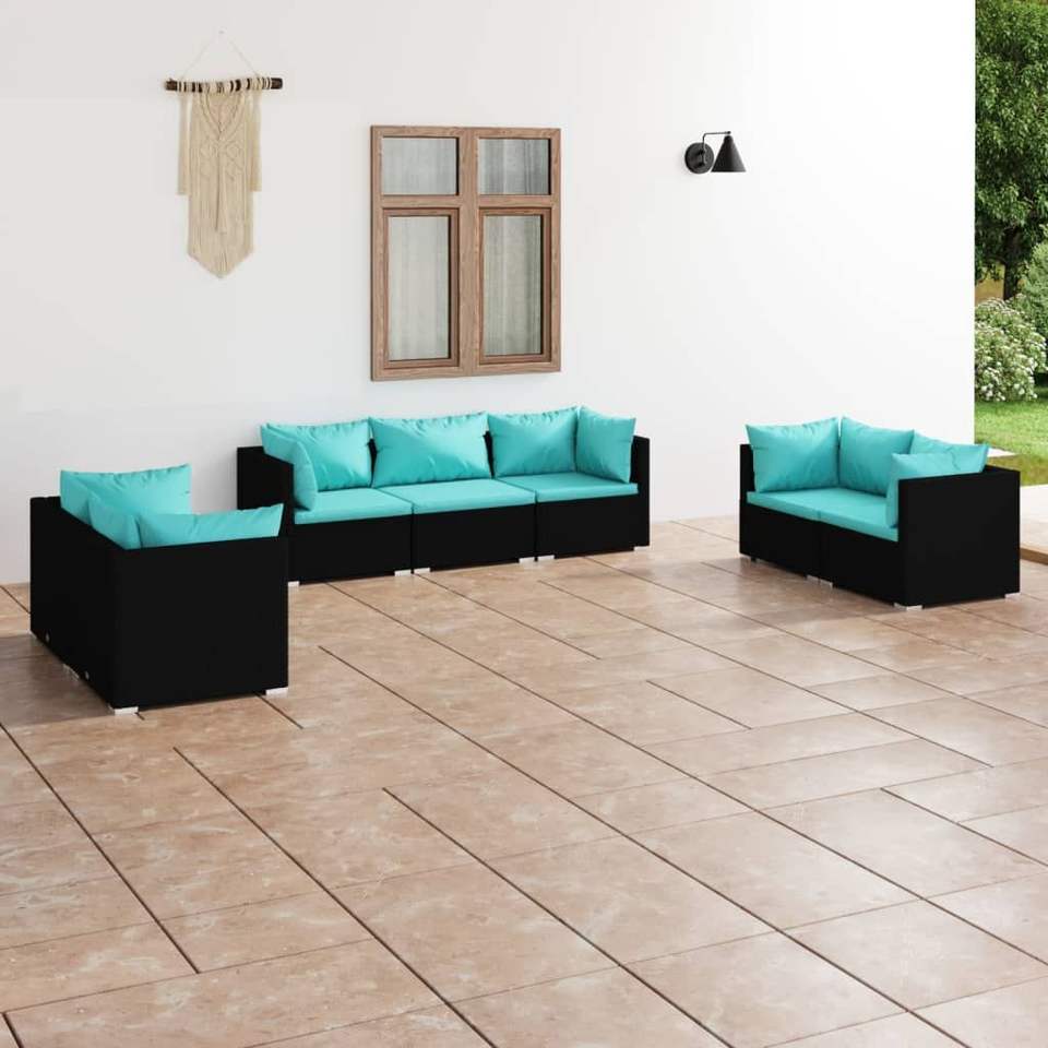 Set da salotto in 7 pezzi in Poly Rattan nero con comodi cuscini mobili da esterno per il tempo libero