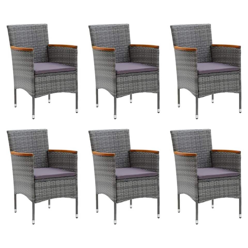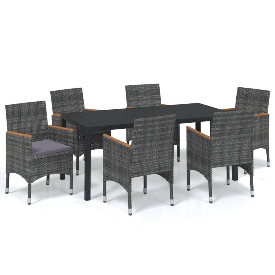 Set da pranzo da 7 pezzi in Poly Rattan grigio con cuscini per il tempo libero in giardino
