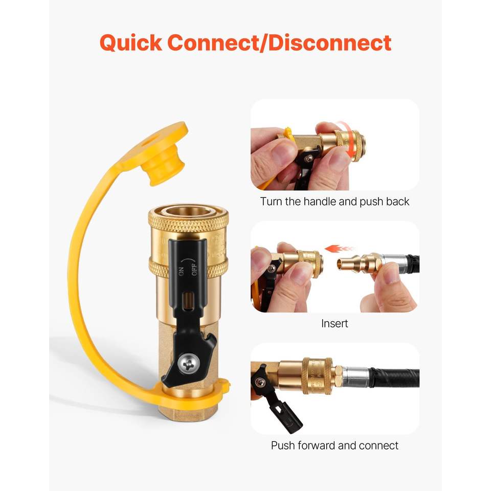 Kit di connessione rapida a propano RV da 7 pezzi Adattatore maschio NPT da 1/4 pollici valvola svasata maschio da 3/8 pollici