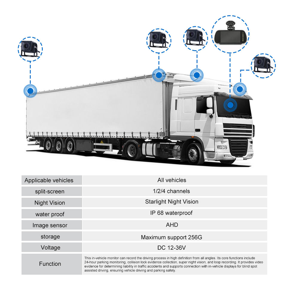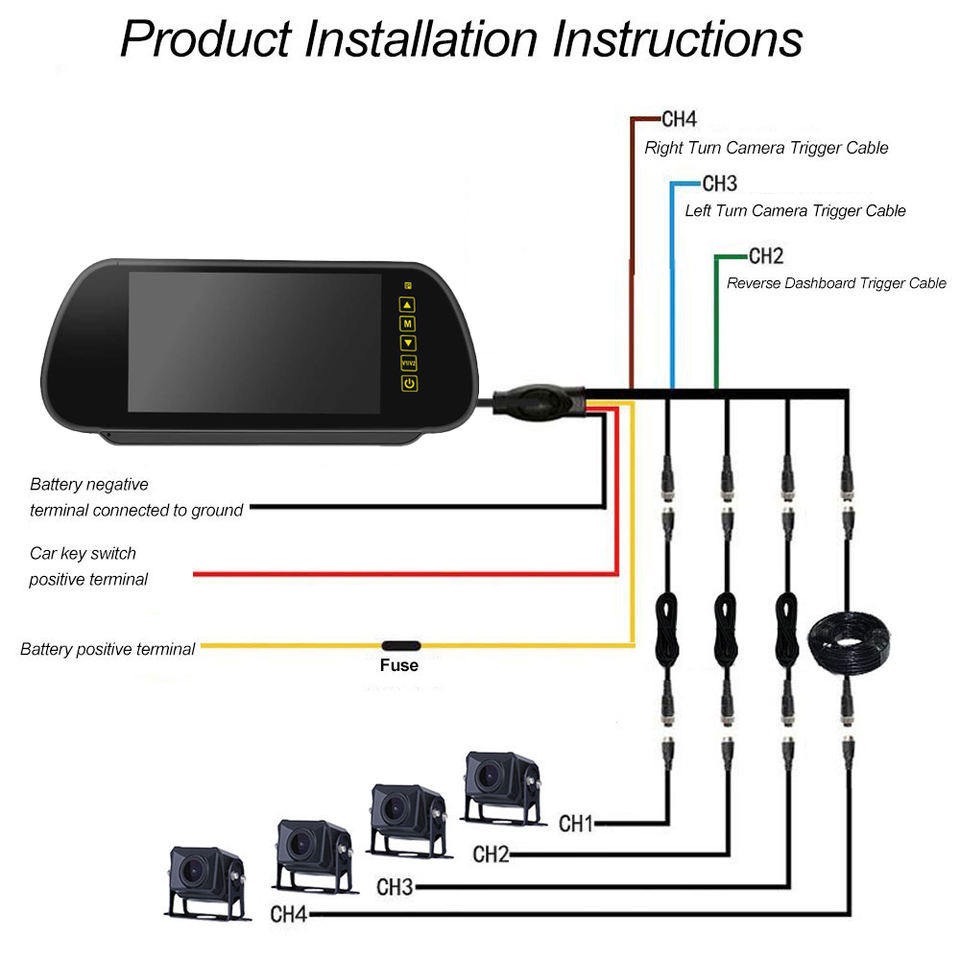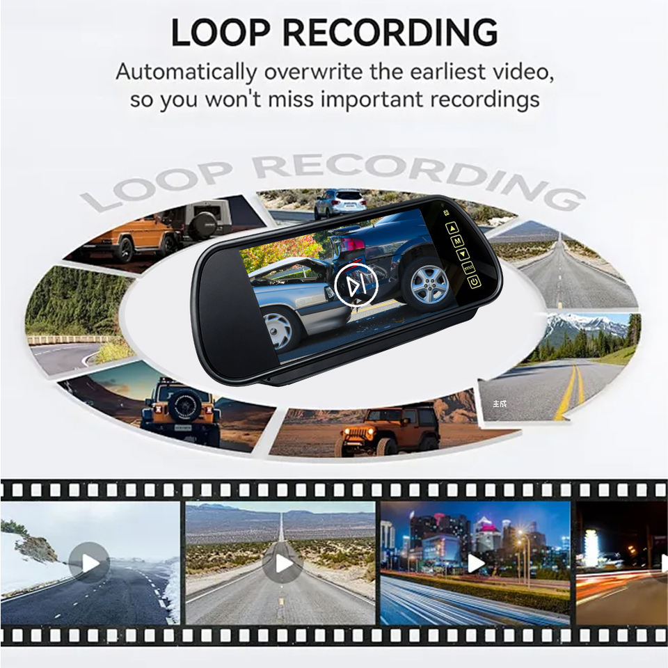 Kit Telecamera di Retromarcia con Monitor Specchietto Retrovisore 7\" Quad DVR Visione Notturna per Camion Camper