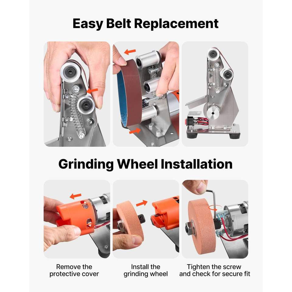 Levigatrice a Nastro Mini 3-in-1 a 7 Velocità Regolabili con Nastro Abrasivo da 13'' x 1.2'' e Disco Lucidante/Levigante da 2.75'' Combo Avanti/Indietro