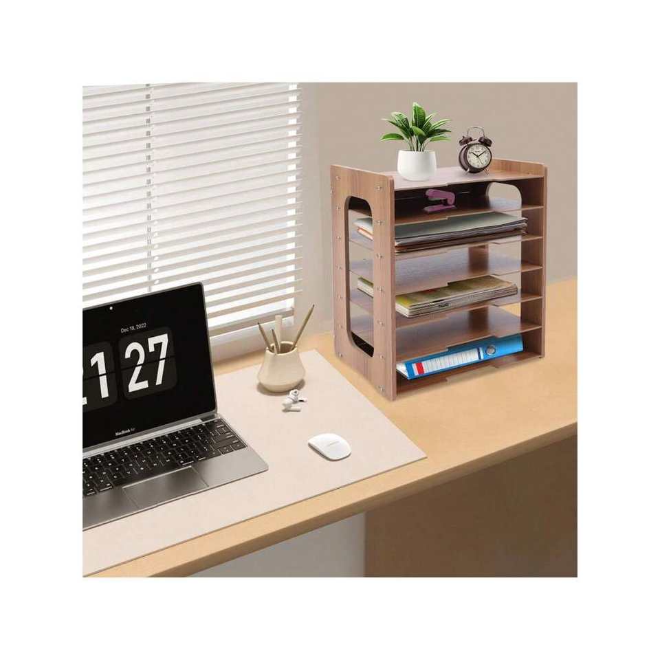 7-Tier Widen Wood Office Organizer for Desk A4 Paper Sorter Document Book Holder Desktop File Tray Letter Magazine Organizer